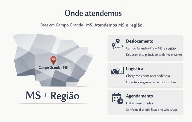 Do palco ao bastidor, do abraço ao aplauso: a gente registra o que realmente acontece — e o que quase ninguém vê. Cobertura completa para eventos em geral, com fotos espontâneas e bem dirigidas na medida certa, valorizando pessoas, momentos, detalhes e a atmosfera do dia. Entrega organizada, qualidade profissional e um olhar atento para contar a história do seu evento do começo ao fim.